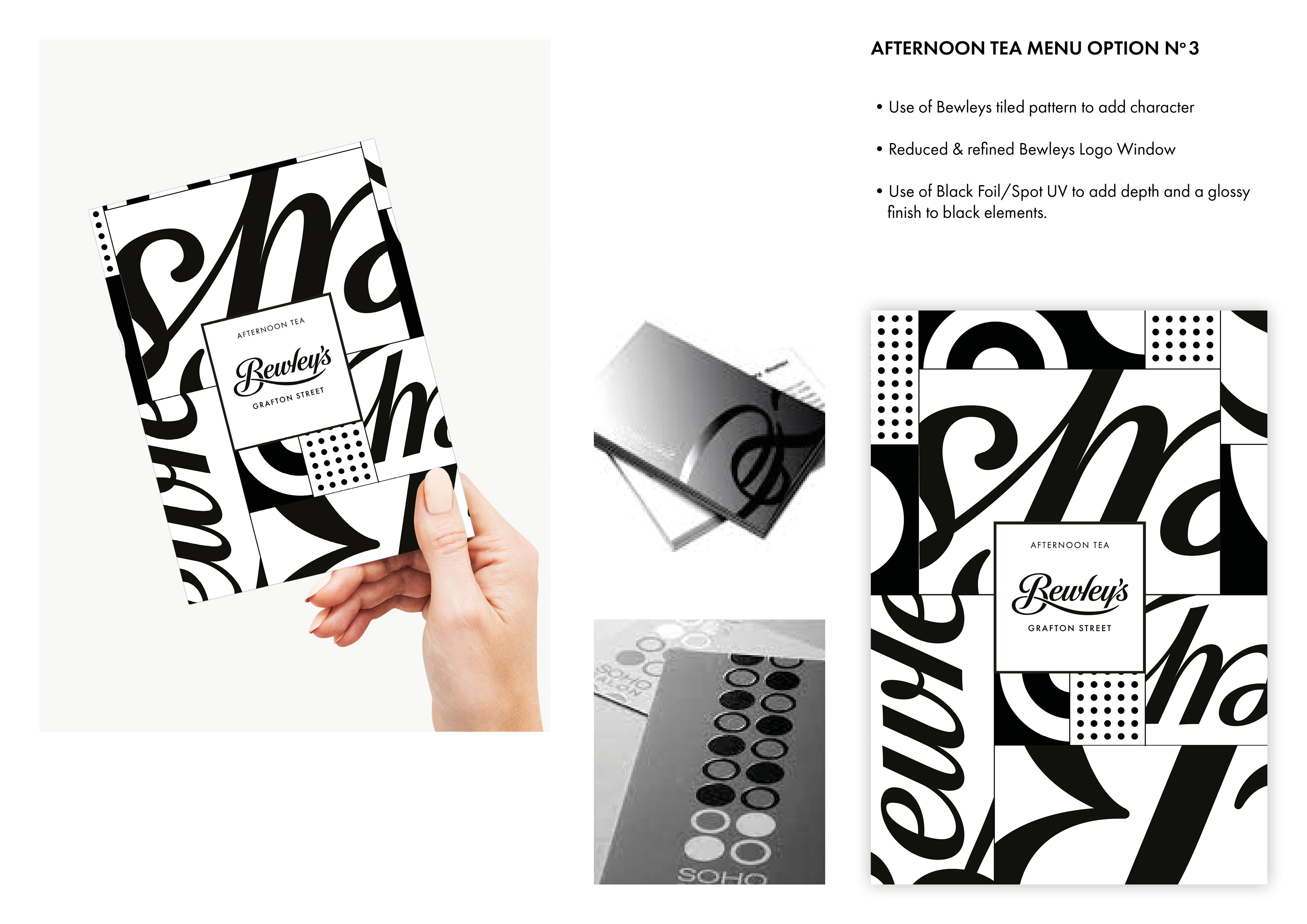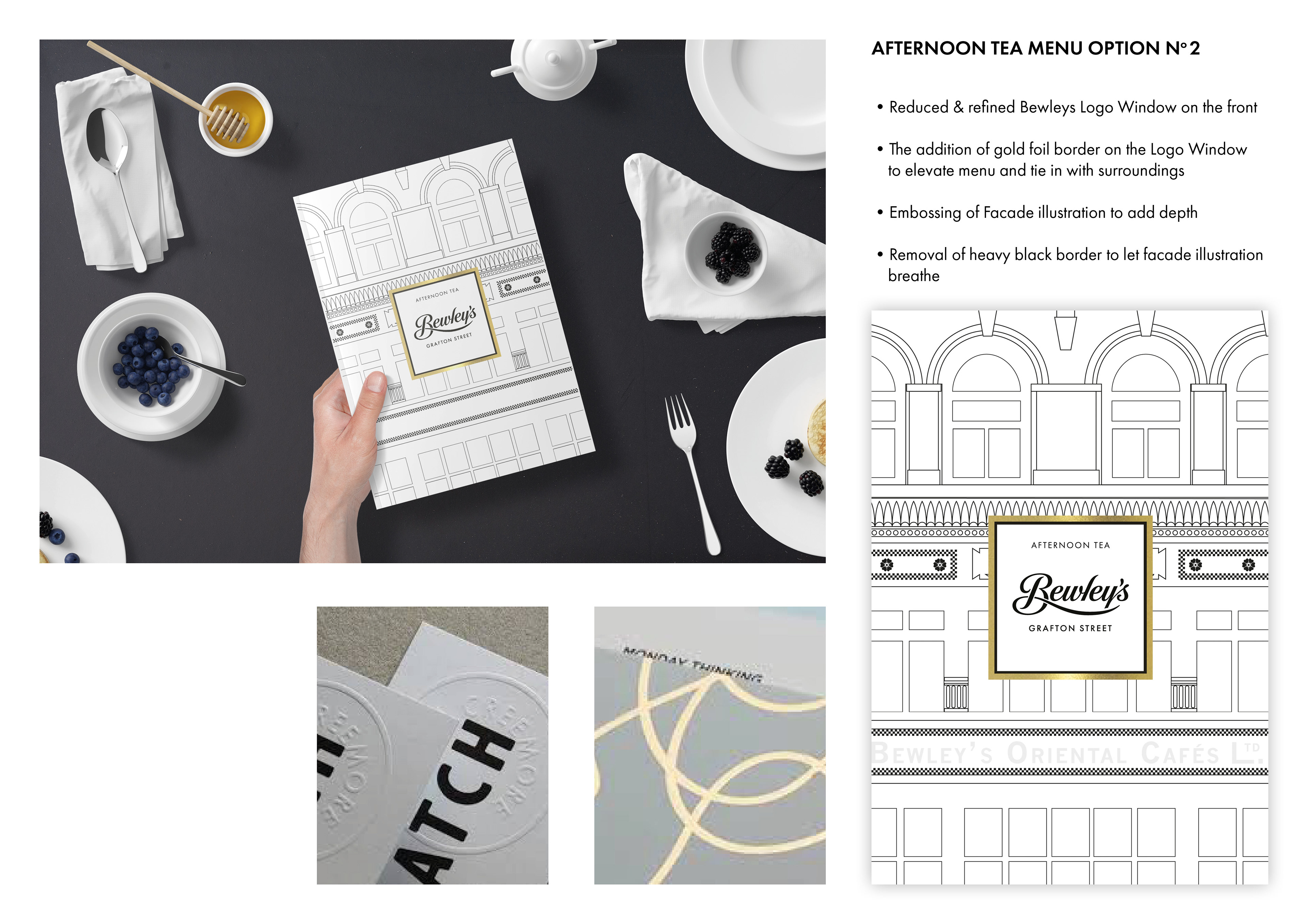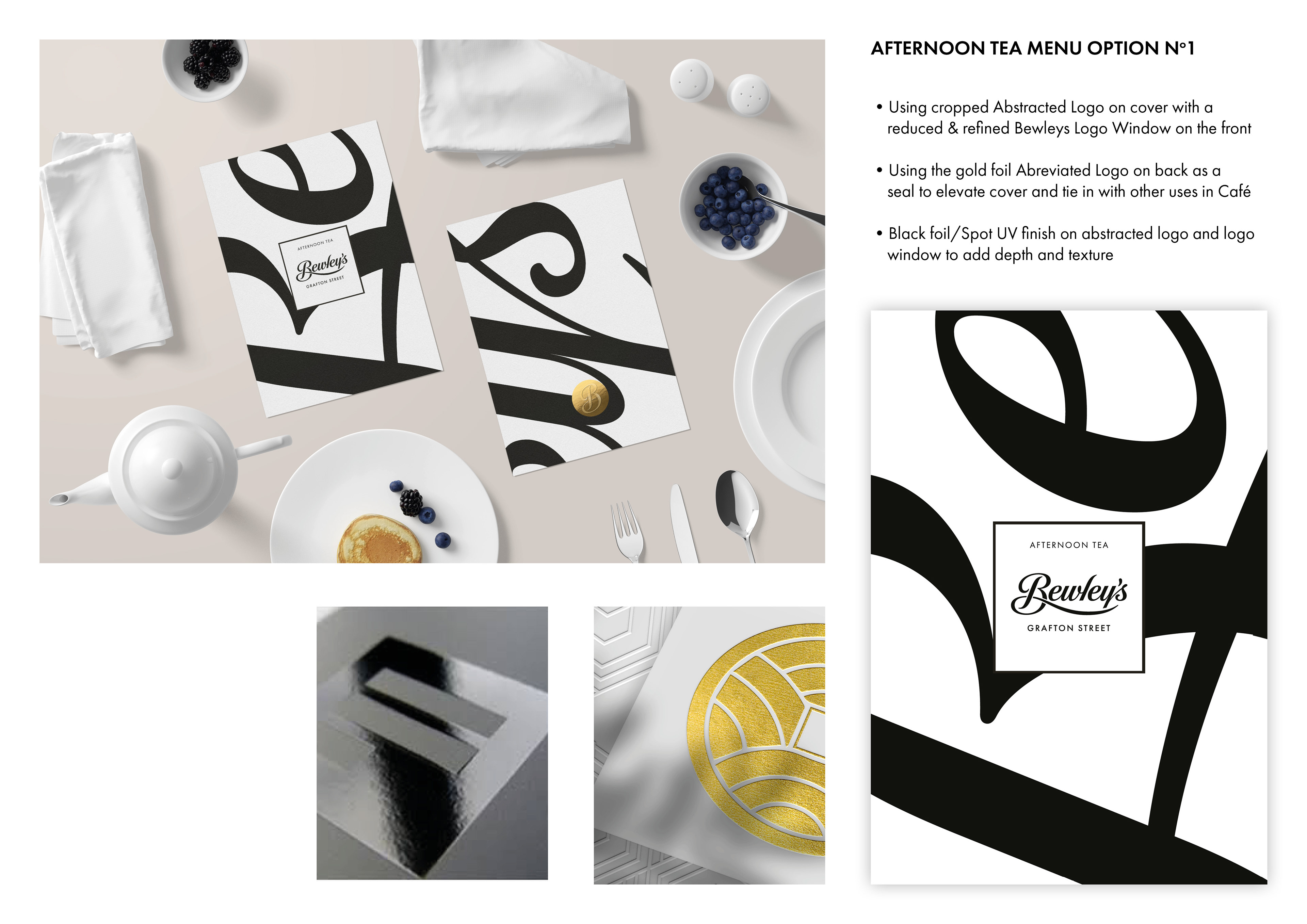 Bewley’s Café Afternoon Tea Menu required a refreshed Afternoon Tea menu that would align with its distinctive monochromatic brand identity. My approach focused on creating a design that felt elevated—echoing the heritage of this iconic Dublin location.